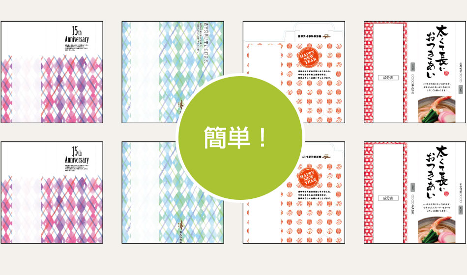 テンプレートからデザインを選ぶか、完全データ入稿に対応しております