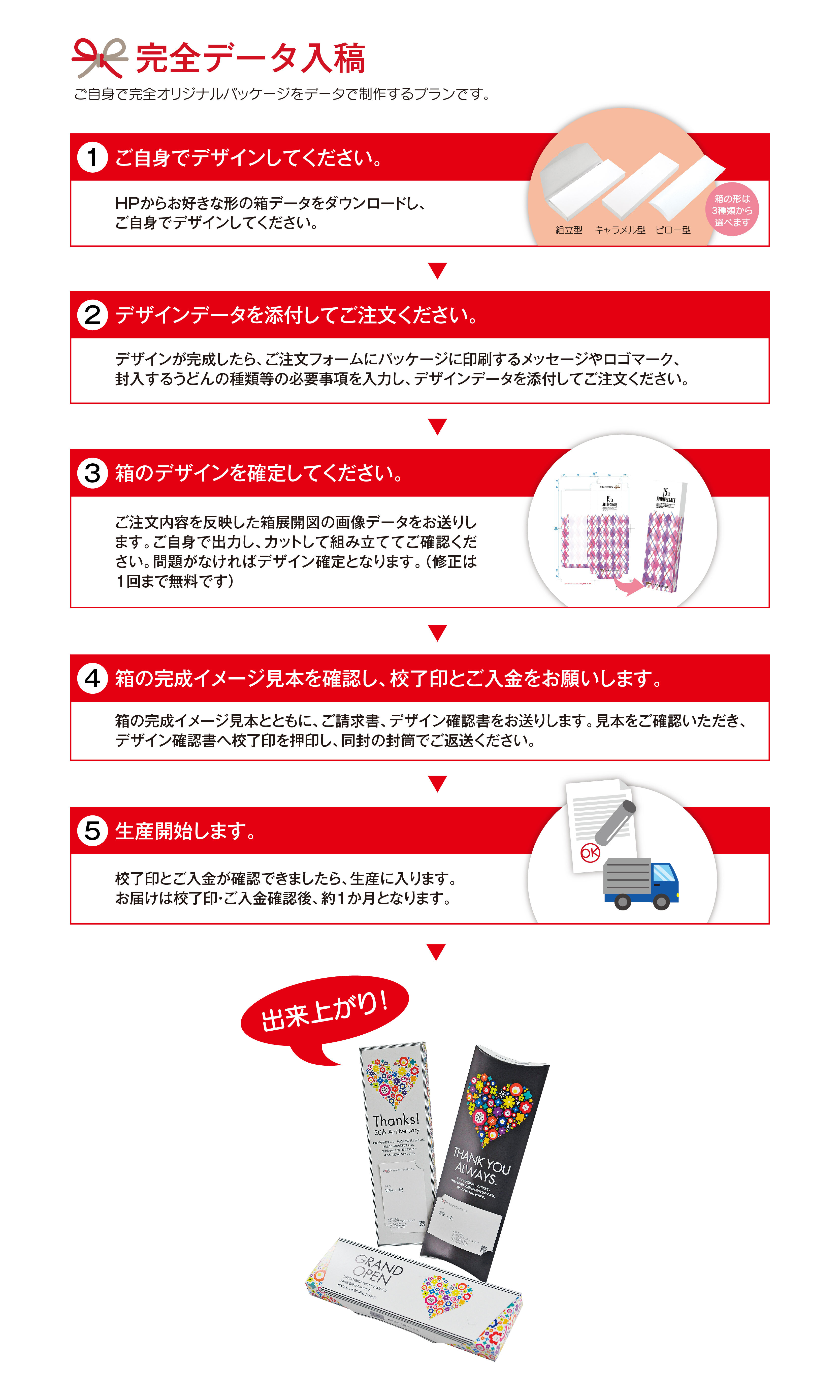 テンプレートからデザインを選ぶか、完全データ入稿に対応しております